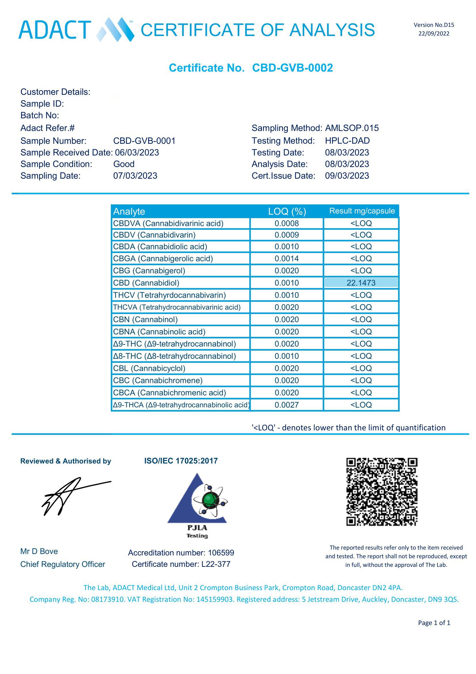 Ingredients: Zinc 10mg - 100% NRV, B6 1.4mg - 100% NRV, B12 2.5mcg - 100% NRV, Magnesium 46.50mg - 12.5% NRV, CBD 20mg - No NRV, Vit C 80mg - 100% NRV, Sage 10:1 extract - No NRV