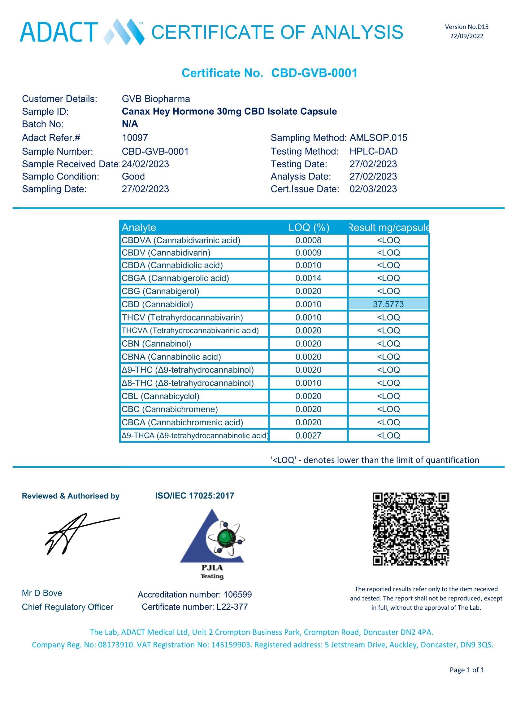 Canax 900mg Broad Spectrum Hey Hormones CBD & Vitamin Capsules - 30 Caps