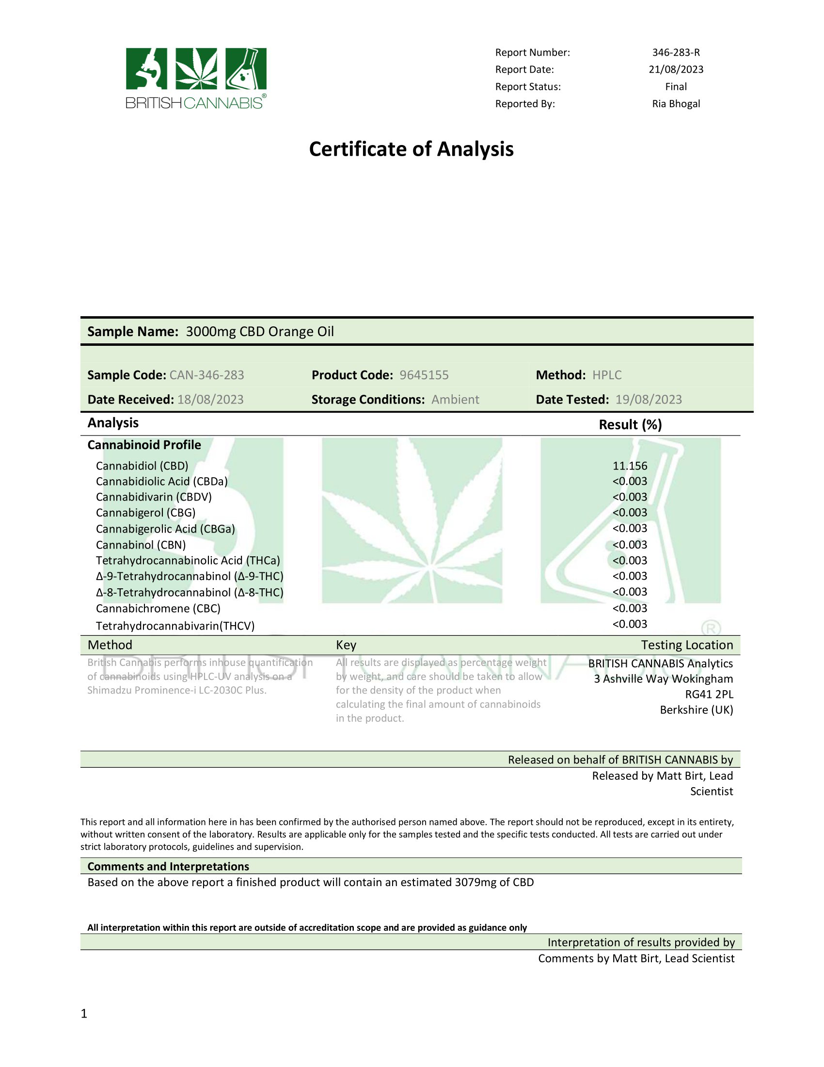 Ingredients: High-quality CBD from a hemp extract, MCT Coconut Oil, and Natural flavourings.