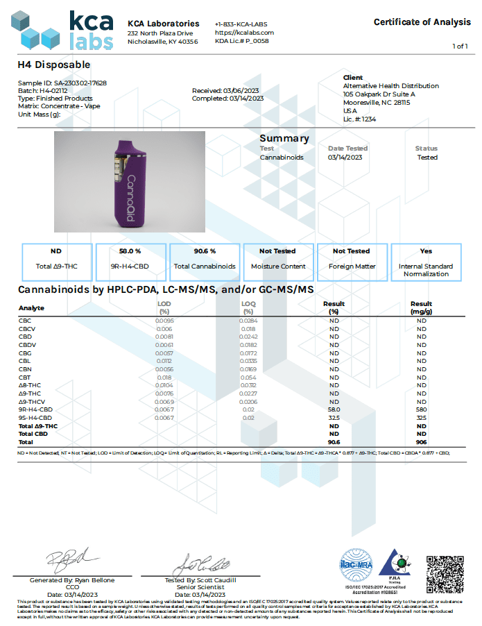 CannaAid 1000mg H4 CBD Disposable Vape Device