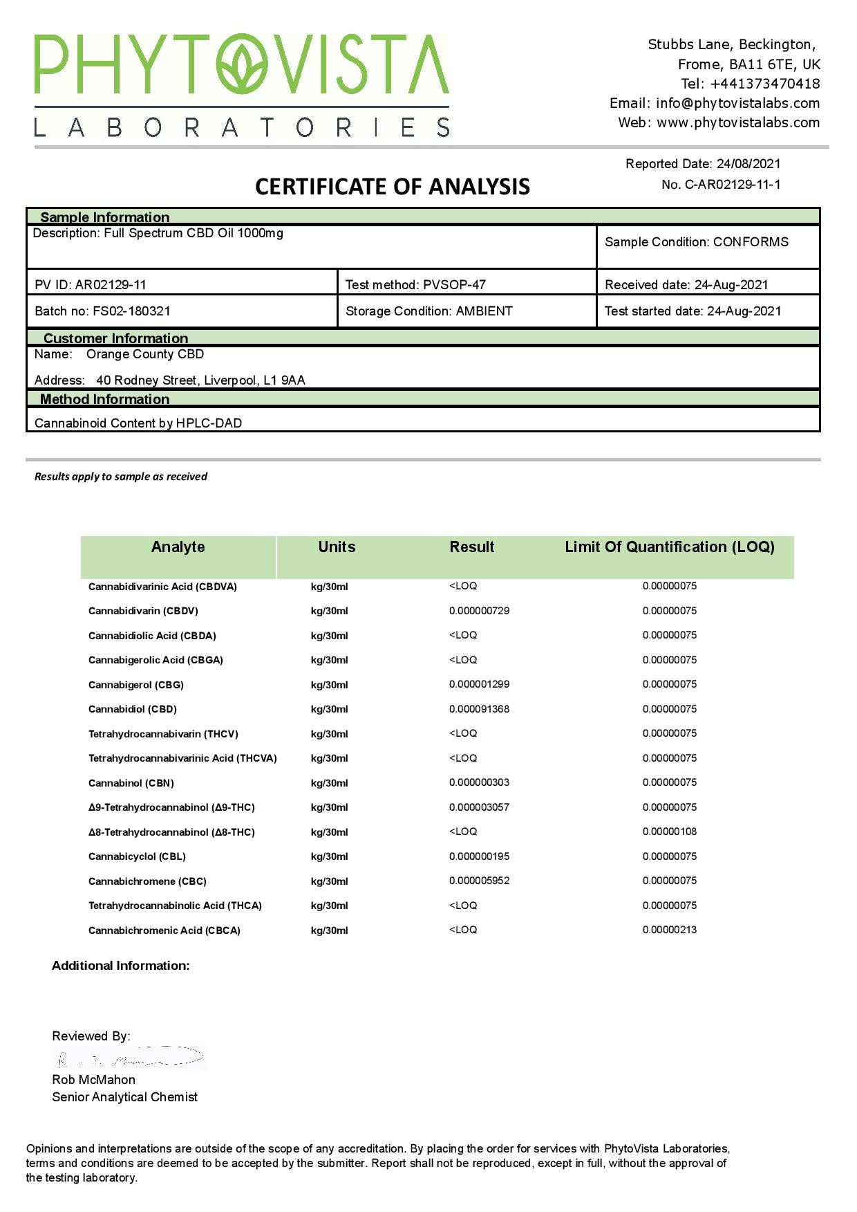 Orange County CBD 1000mg Full Spectrum CBD Oil - 10ml