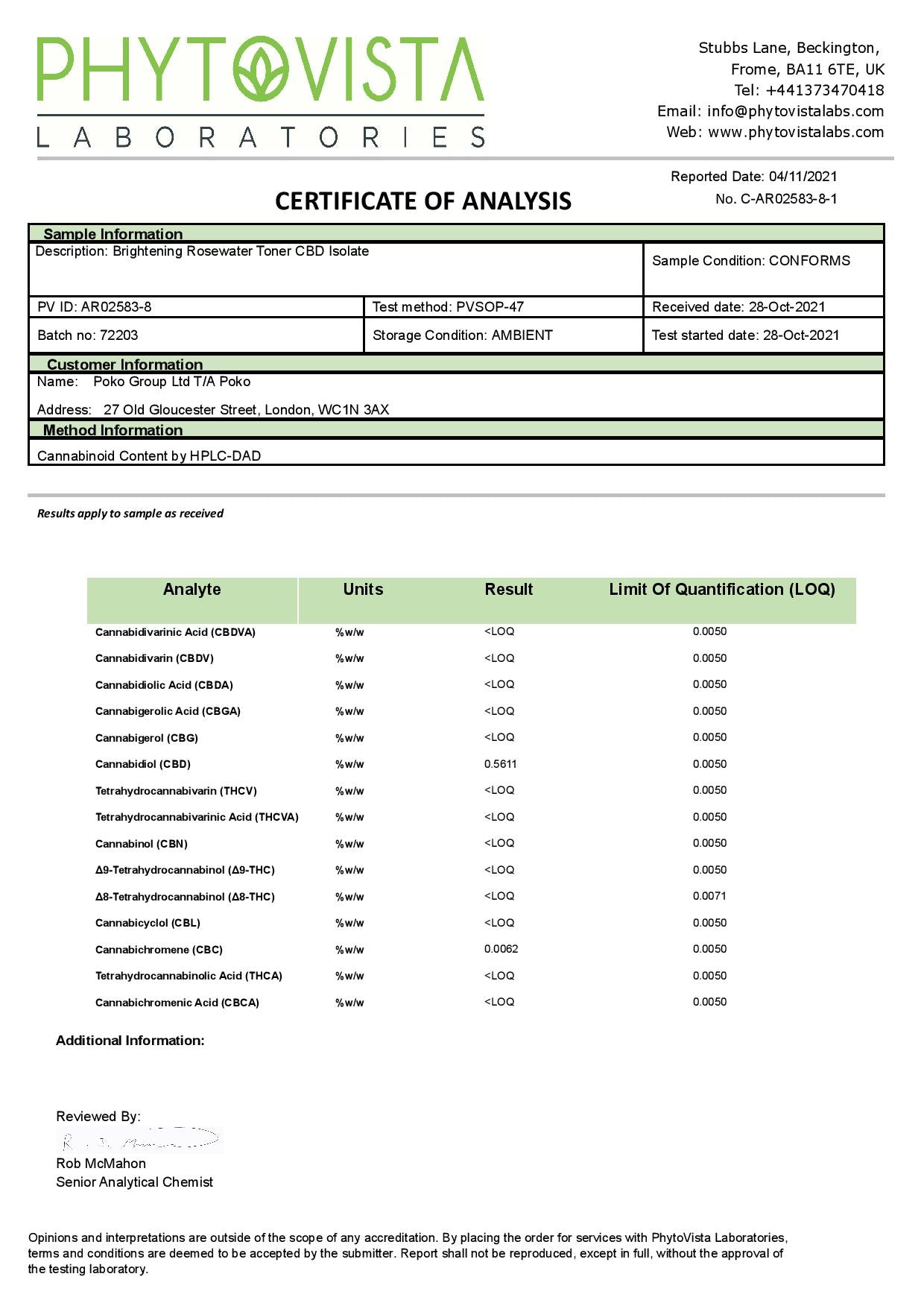 Poko 500mg CBD Brightening Rosewater Toner - 100ml
